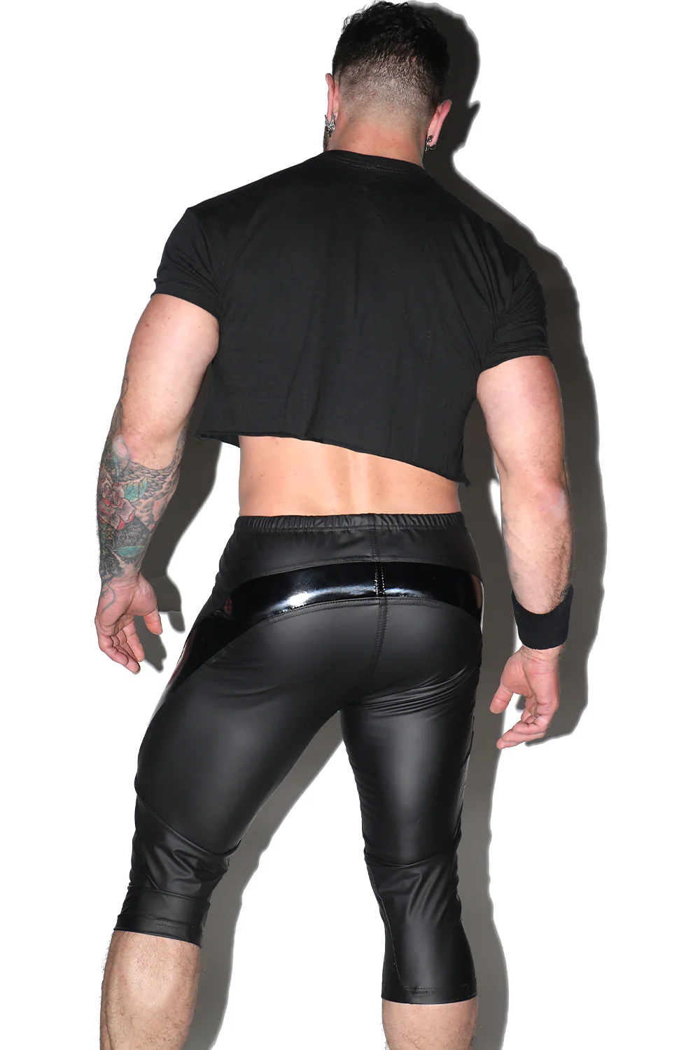Made from our strong and masculine Neoflex material which is a matte black rubberized four way stretch material with a spandex underside so they are super comfortable and durable offering the look of industrial latex but none of the discomfort. Lightweight and durable these are the best option out there as far as a sporty fetishy pant. The zipper pouch remains that shape all the time so you don't have to worry about how your junk looks and the glossy black stripe going up the leg and across the top of the butt makes your thighs and ass POP. They have a drawstring so even if the zipper on the pouch is down they stay up if you want.