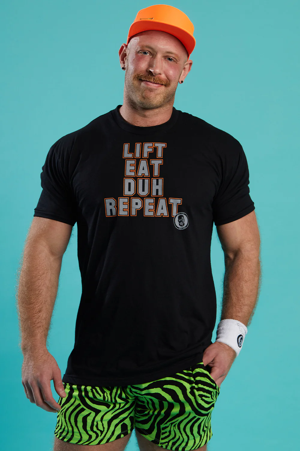 Its a LIFESTYLE! Our classic Lift, Eat, Duh, Repeat Tee now in black with grey and orange graphics!