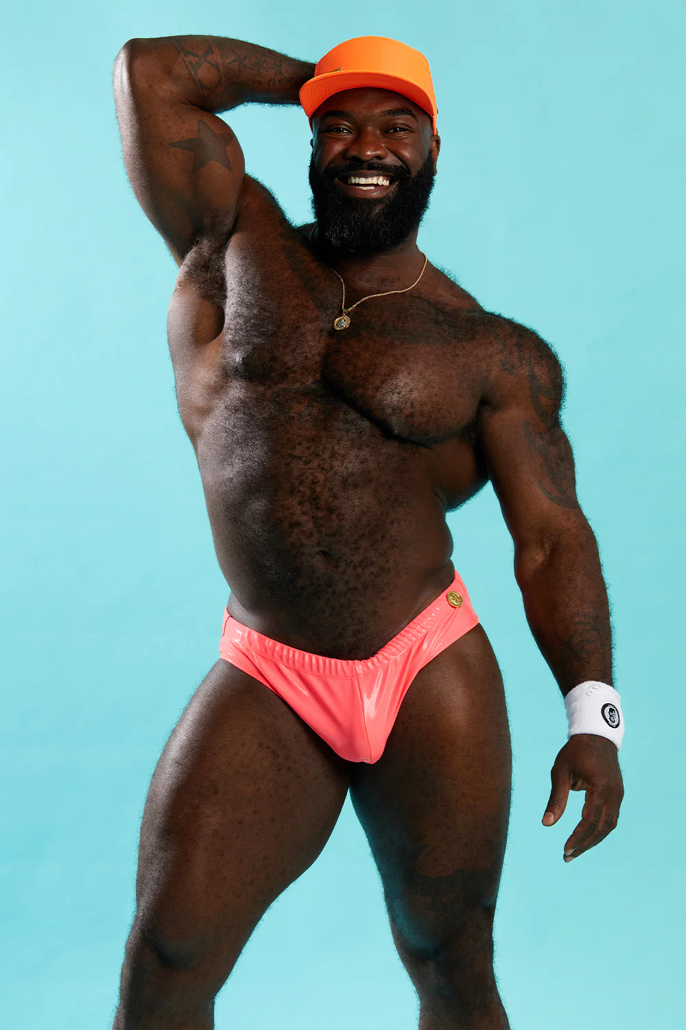 The single seam contour pouch means you get a lot of comfort while getting the most flattering cut possible. The gold plated detailing of the logo and toggles add a nice element of luxury which really pair well with the coral color. The Neon Orange with Gold Razor Logo Hat, Crop Top Tee, and Super Heavy weight Gold Chain all pair perfectly and are all available in the Shades Gear section of the site.