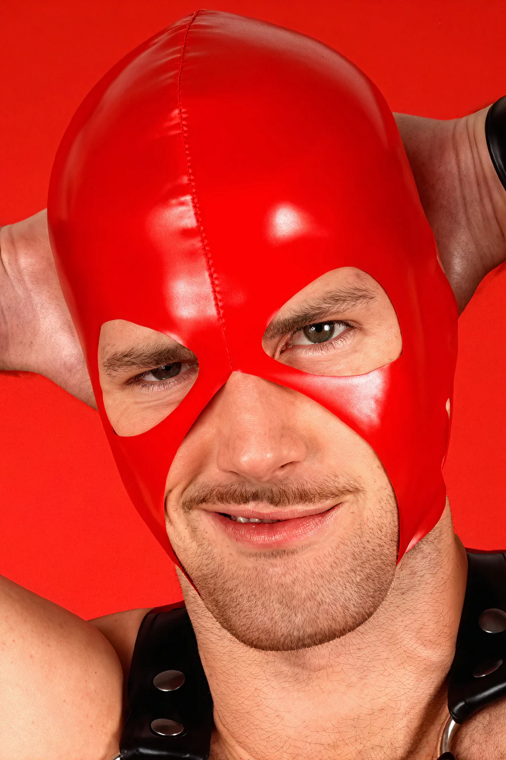 A Glossy red version of our Latex-Look Spandex Sexecutioner style spandex hood for your fetishistic needs. Its our most popular hood as we invented this style of hood.