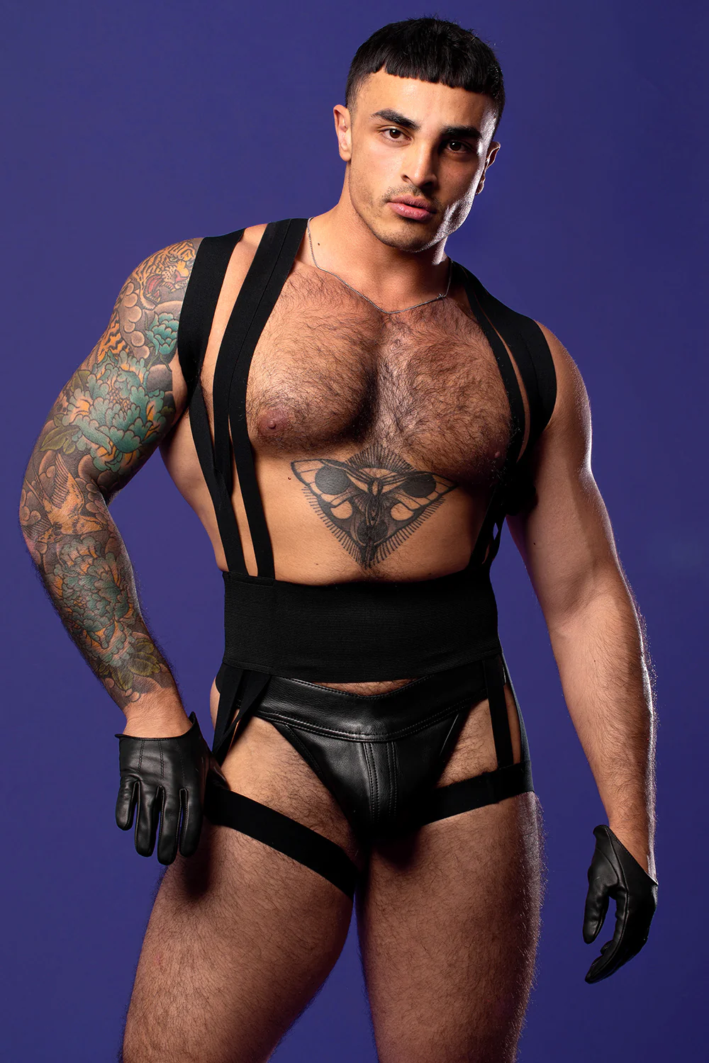 The masculine but chic lines of this harness combined with the cummerbund element of the extra wide waistband inspired us to name this the Tuxedo Harness. The super high quality banding is so precisely cut and placed this harness will make your waist look small and your chest and back look broad and muscular.